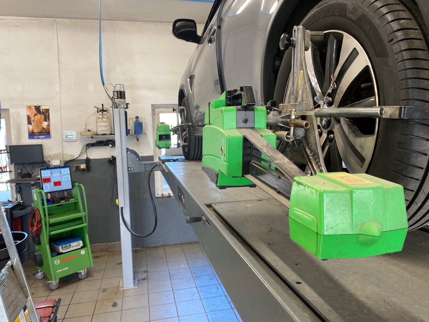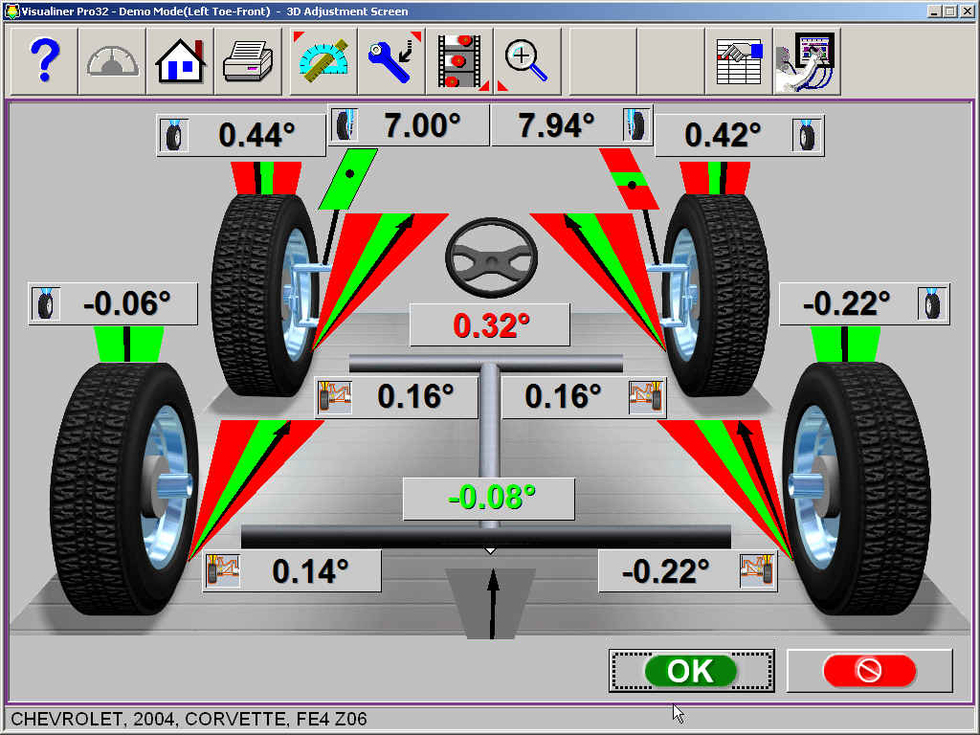 Kontrola a seřízení geometrie kol spočívá v nastavení úhlů jednotlivých seřizovatelných částí zavěšení kol vozidel v souladu s parametry stanovenými výrobcem vozidla a zároveň v kontrole opotřebení pneumatik.